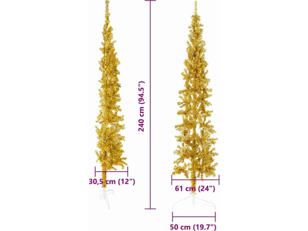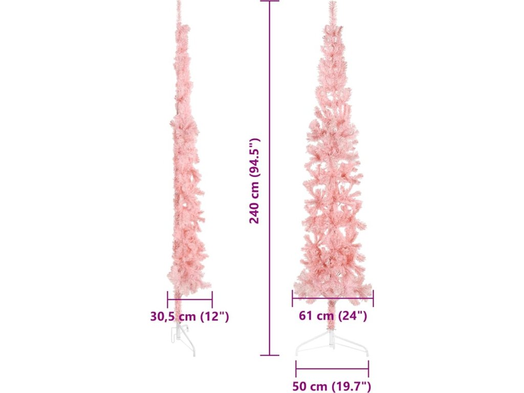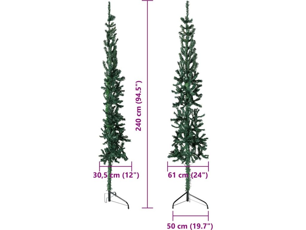 Úzký umělý poloviční vánoční stromek se stojanem 240 cm [344598]