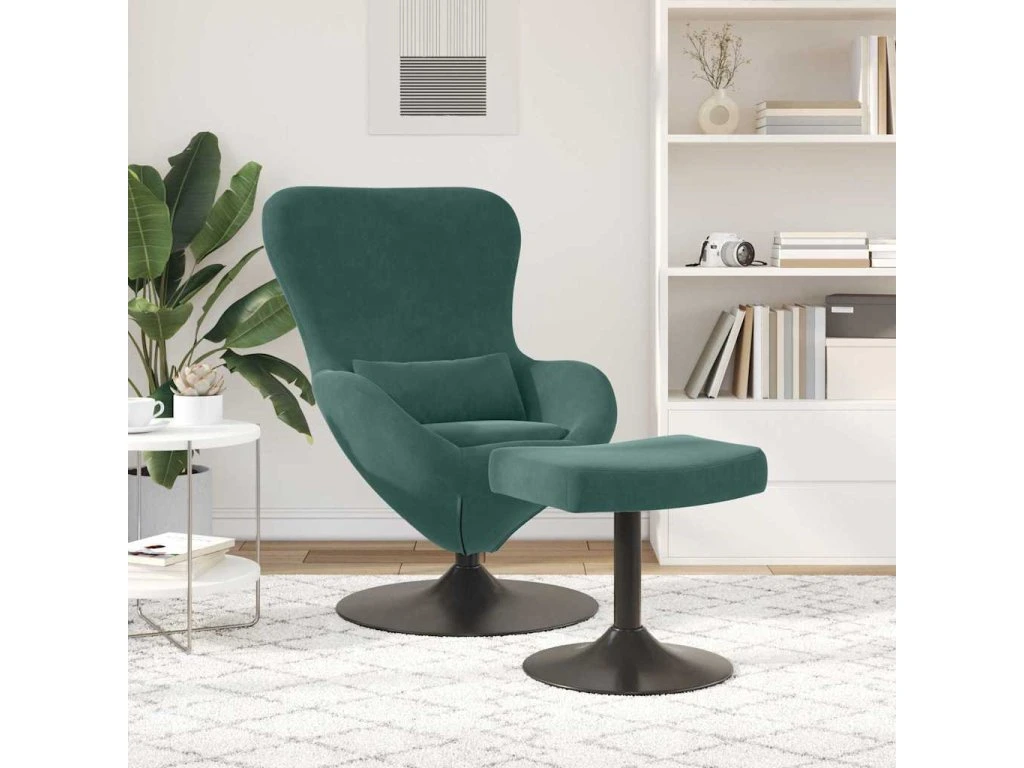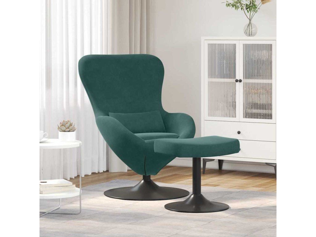Vajíčková židle s podnožkou Tmavě zelená samet [42002746]