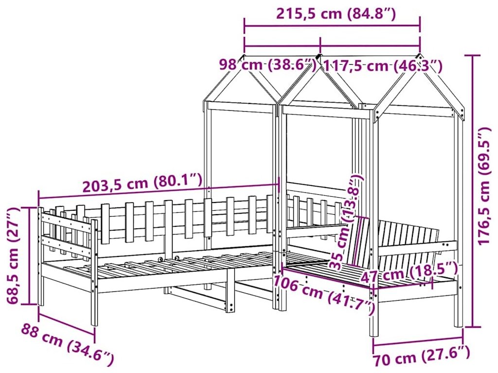 Tuto všestrannou dřevěnou soupravu denní postele a lavice lze použít jako lůžkovou soupravu v ložnici a je ideální také jako sedací souprava v obývacím pokoji. Dokonale vyhoví vašim nejrůznějším potřebám a poskytne vám spoustu místa ke spánku či odpočinku.