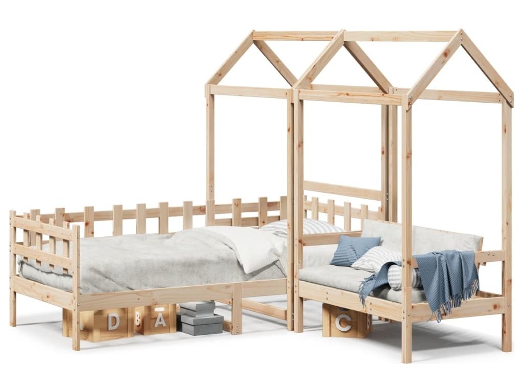 Válenda a lavice se střechou 80 x 200 cm masivní borovice [3282319]