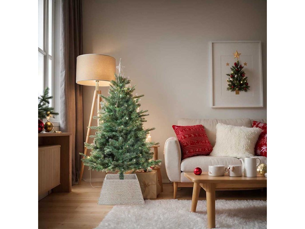 - Součásti: Obal má jeden, jednolitý design, který se snadno obepne kolem základny vašeho stromečku. Jako promyšlený doplněk sváteční výzdoby dodává čistý a hotový vzhled, ideální jak pro rodinná setkání, tak pro klidné vánoční chvíle. Jeho jednoduchý, ale efektivní design nechává stromeček v centru pozornosti a obal ho nádherně doplňuje.