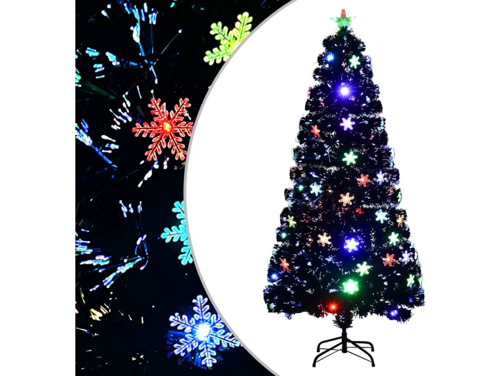 Vánoční strom s LED vločkami černý 150 cm optické vlákno [328462]