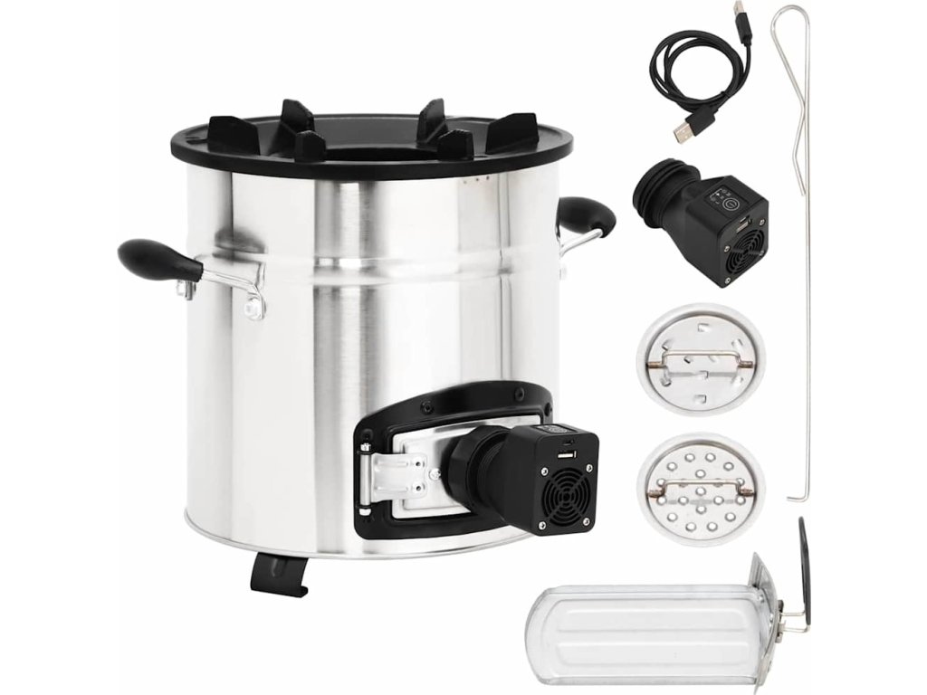Tento vařič na dřevo s USB ventilátorem vám poslouží na vaření při venkovních aktivitách a vytvoří teplo a útulnou atmosféru, když se ochladí.