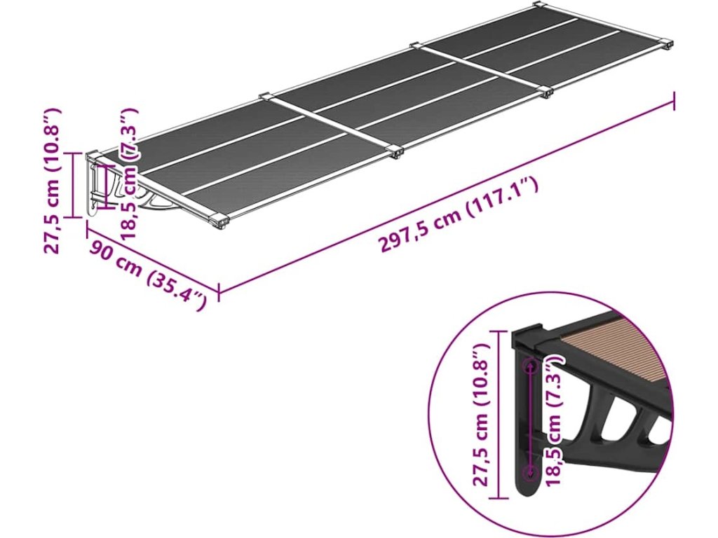 Vchodová stříška černá 297,5 x 90 cm polykarbonát [153701]