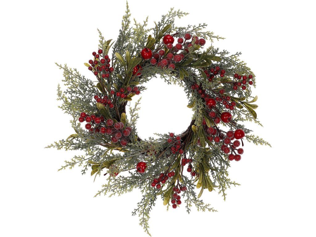 Věnec zelený (o50 cm) - červené bobule a jablíčka. PRZ4015 [4015]