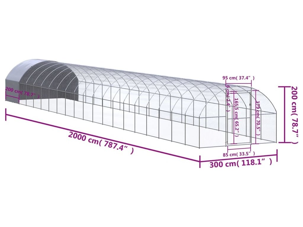 Venkovní klec pro kuřata 3 x 20 x 2 m pozinkovaná ocel [3095479]