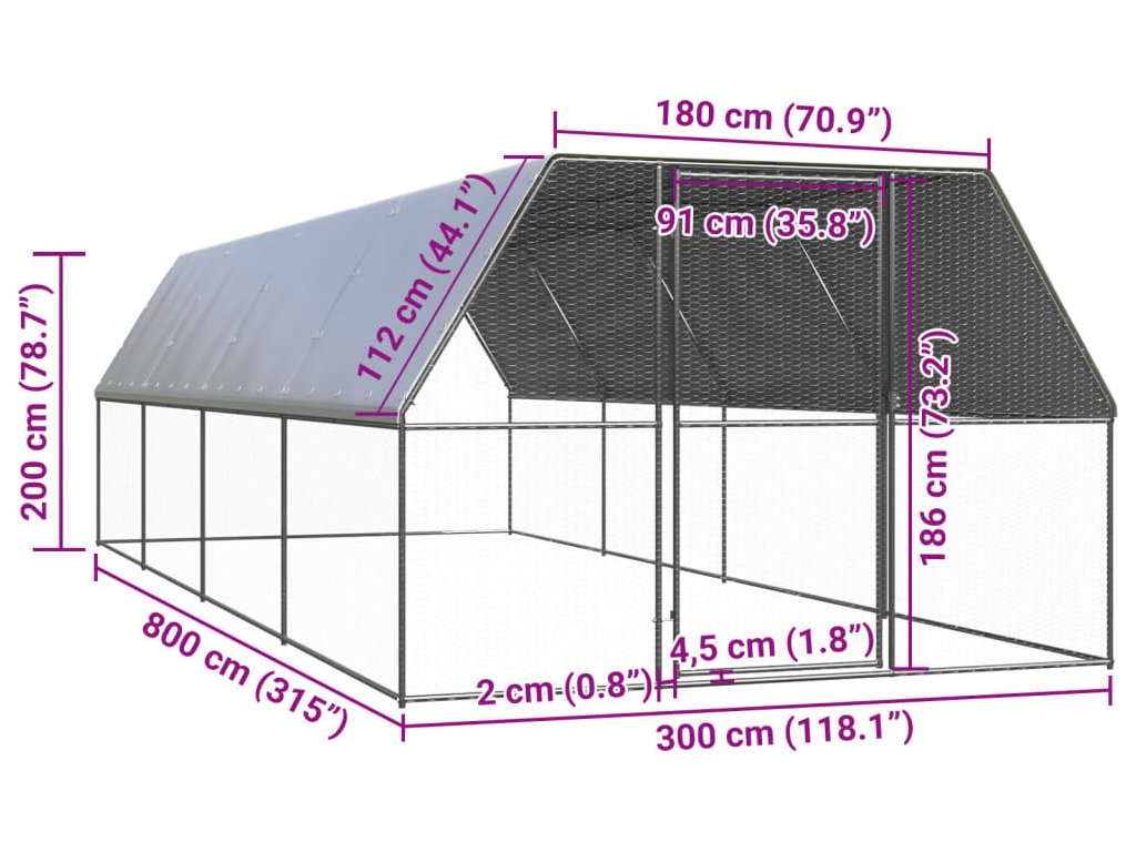 Venkovní klec pro kuřata 3 x 8 x 2 m pozinkovaná ocel [3154378]