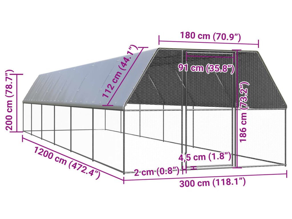Venkovní klec pro kuřata 3x12x2 m pozinkovaná ocel [3154380]