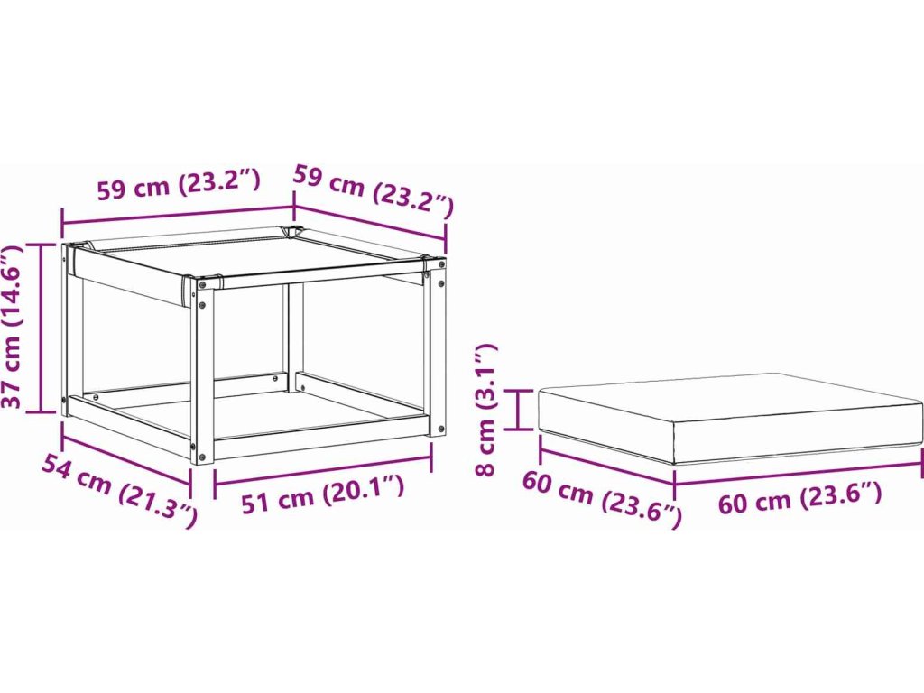 - 1 x Podnožka: 59 x 59 x 37 cm (D x Š x V)