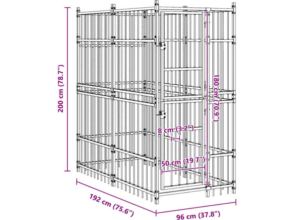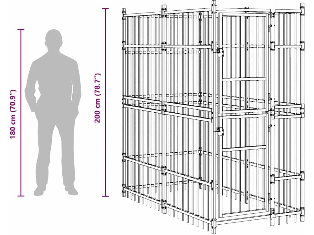 Psí kotec poskytne vašim psům spoustu prostoru k pohybu. Stěny z ocelových mříží předchází neplechám a neočekávaným nehodám a pouští dovnitř čerstvý vzduch. Vzhledem k jeho robustní a pevné konstrukci z práškově lakované oceli je kotec velmi odolný a vydrží vám sloužit po dlouhá léta. Dvířka s panty jsou opatřená uzamykatelnou západkou, aby vašim pejskům zaručila mimořádné bezpečí.