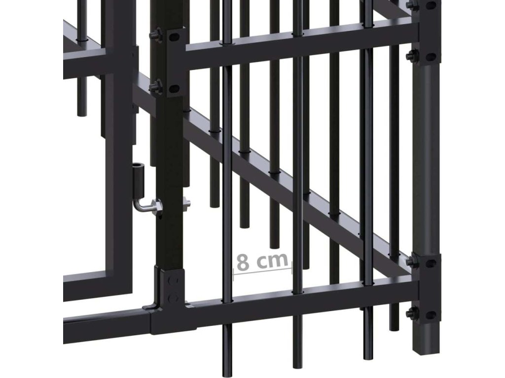 Psí kotec poskytne vašim psům spoustu prostoru k pohybu. Stěny z ocelových mříží předchází neplechám a neočekávaným nehodám a pouští dovnitř čerstvý vzduch. Vzhledem k jeho robustní a pevné konstrukci z práškově lakované oceli je kotec velmi odolný a vydrží vám sloužit po dlouhá léta. Dvířka s panty jsou opatřená uzamykatelnou západkou, aby vašim pejskům zaručila mimořádné bezpečí.