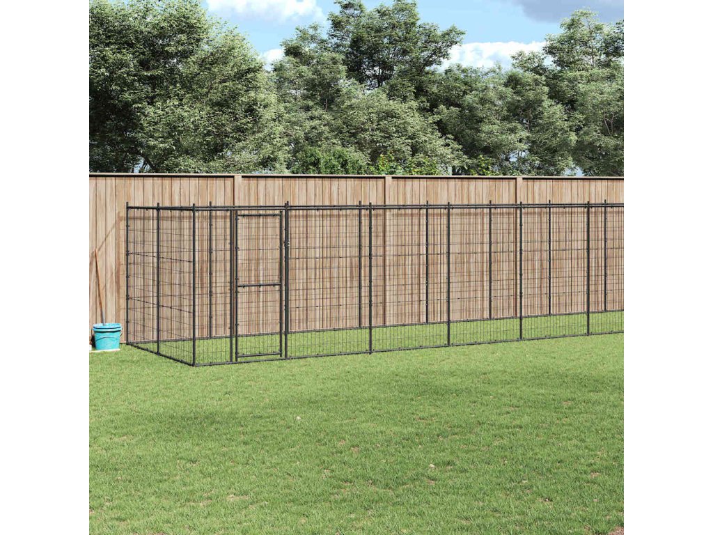 Psí kotec poskytne vašim psům spoustu prostoru k pohybu. Ocelové pletivo předchází neplechám a neočekávaným nehodám a pouští dovnitř čerstvý vzduch. Vzhledem k jeho robustní a pevné konstrukci z práškově lakované oceli má kotec velmi dobrou životnost a vydrží vám sloužit po dlouhá léta. Dvířka s panty jsou opatřená uzamykatelnou západkou, aby vašim pejskům zaručila mimořádné bezpečí.