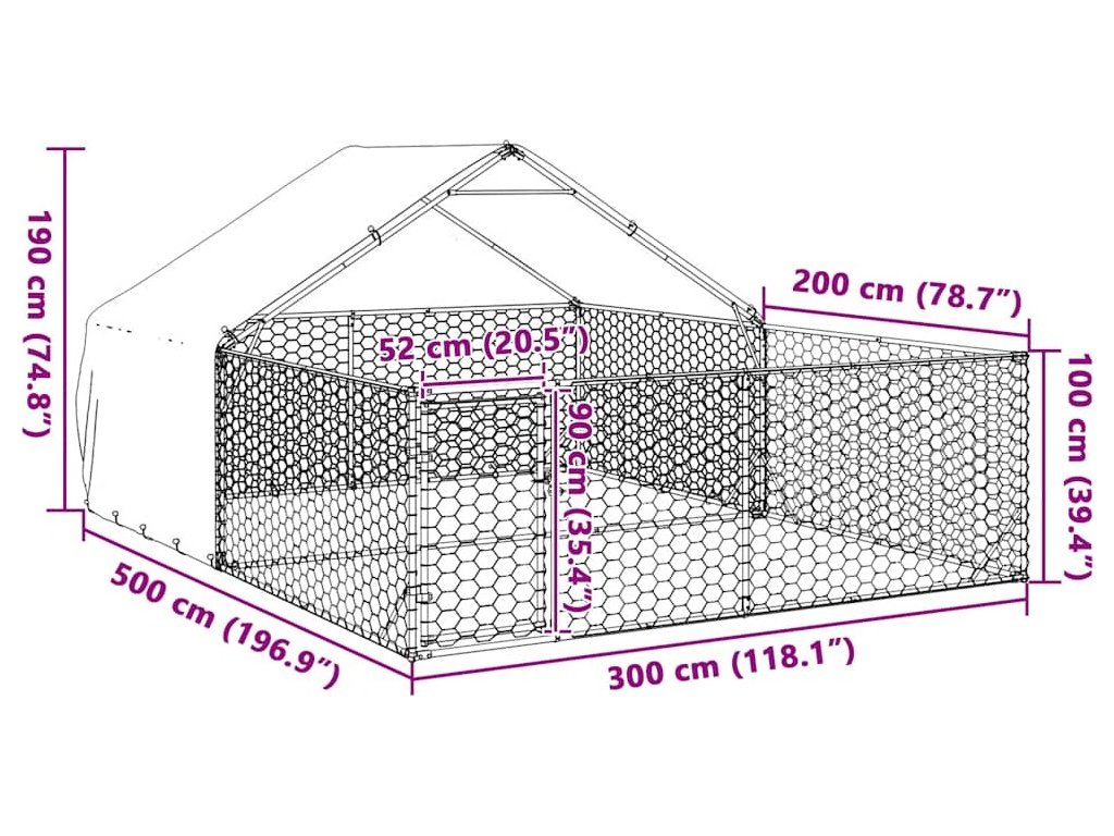 Venkovní psí kotec s výběhem 5x3x1,9 m pozinkovaná ocel [3329243]