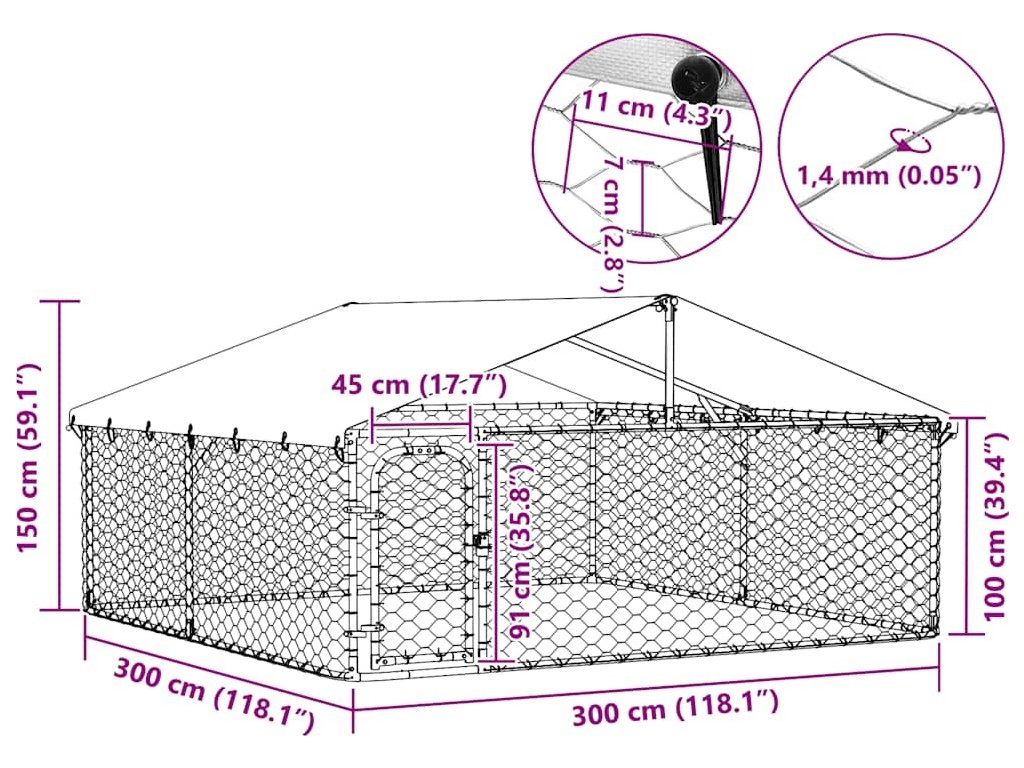 Venkovní psí kotec se střechou 300 x 300 x 150 cm [171501]