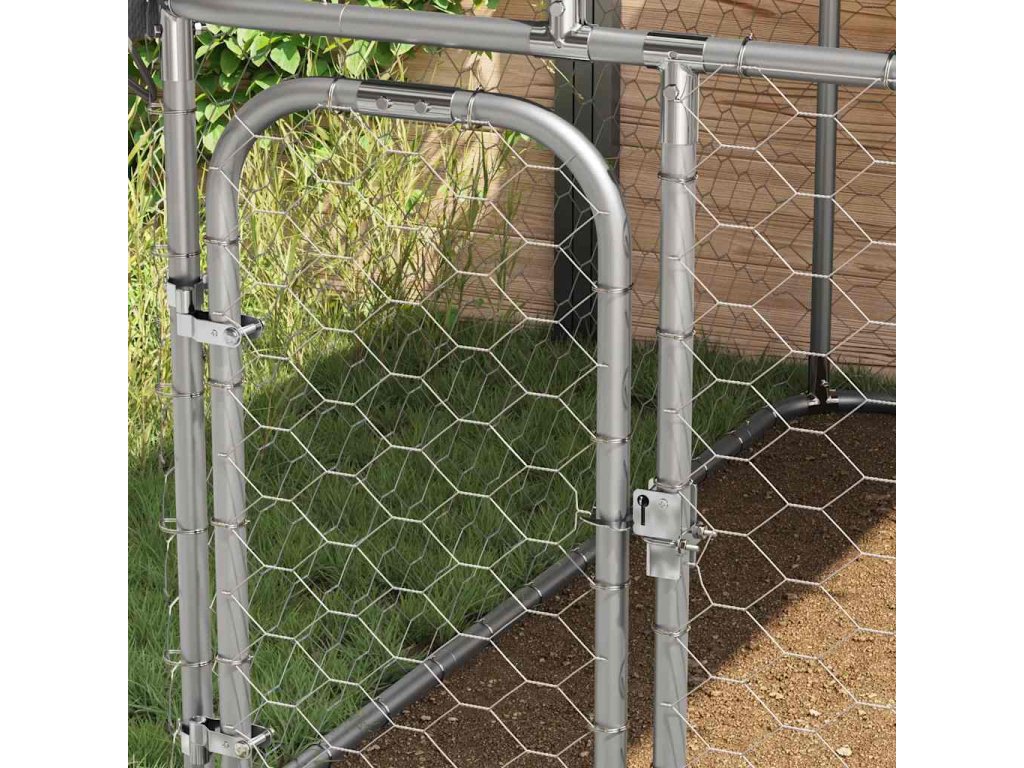 Velký psí kotec poskytne vašim psům spoustu prostoru k pohybu. Pletivo po celém obvodu zároveň zabrání neplechám a nehodám a umožní dostatečné větrání. Pevná konstrukce z vysoce odolné pozinkované oceli zaručuje, že toho kotec hodně vydrží a bude vám sloužit dlouhá léta. Součástí je rovněž střecha ze 100% polyethylenu, která je žáruvzdorná a odolná vůči UV záření a poskytuje ochranu před sluncem, deštěm, sněhem a dalšími klimatickými podmínkami. Dveře s panty lze zamknout na západku pro zvýšené bezpečí vašich psů.