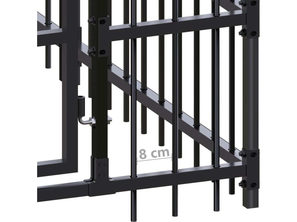 Tento psí kotec poskytuje dostatek prostoru pro cvičení. Stěny z ocelových tyčí pomáhají předcházet neplechám a neočekávaným nehodám a zároveň umožňují větrání. Díky robustní ocelové konstrukci s práškovým nástřikem je tento psí kotec odolný a vyrobený pro dlouhou životnost. Střecha chrání před sluncem, deštěm, sněhem a dalšími povětrnostními vlivy. Dveře s výklopnými dveřmi a uzamykatelným západkovým systémem zajišťují vašim psům větší bezpečnost a ochranu.