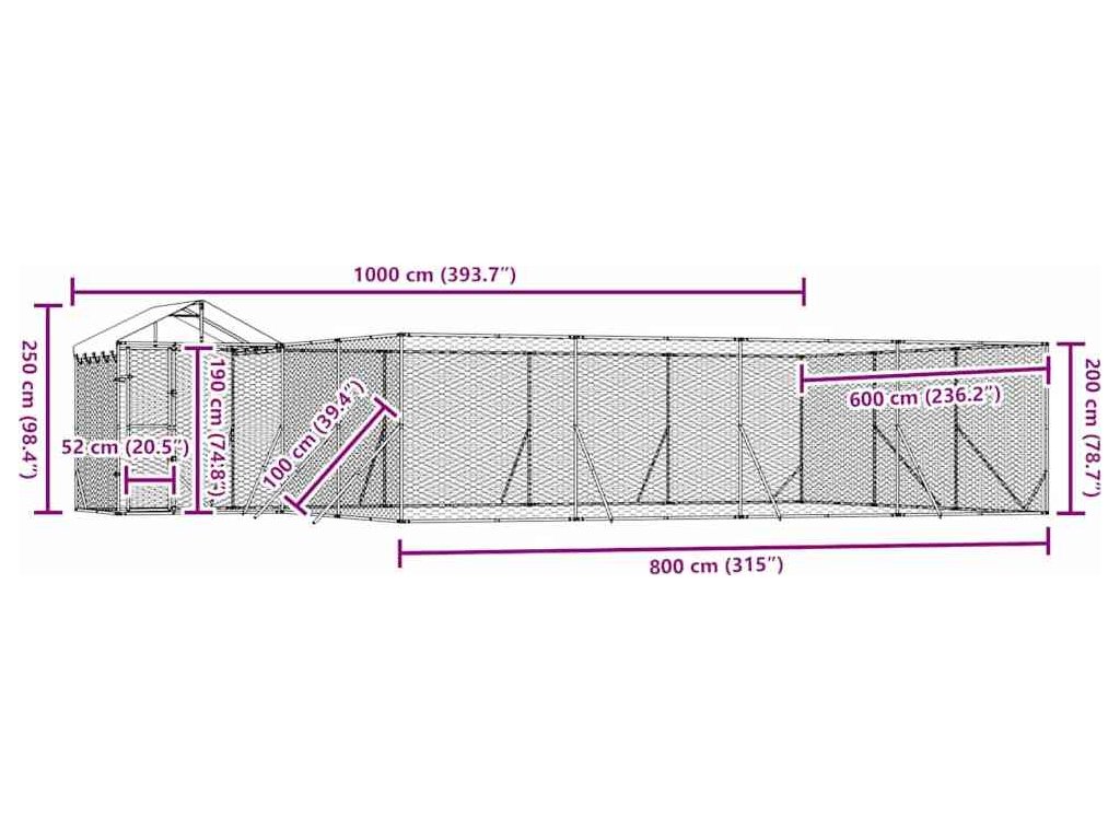 - Pletivová konstrukce: Pletivo kotce zajišťuje suché a větrané životní podmínky.