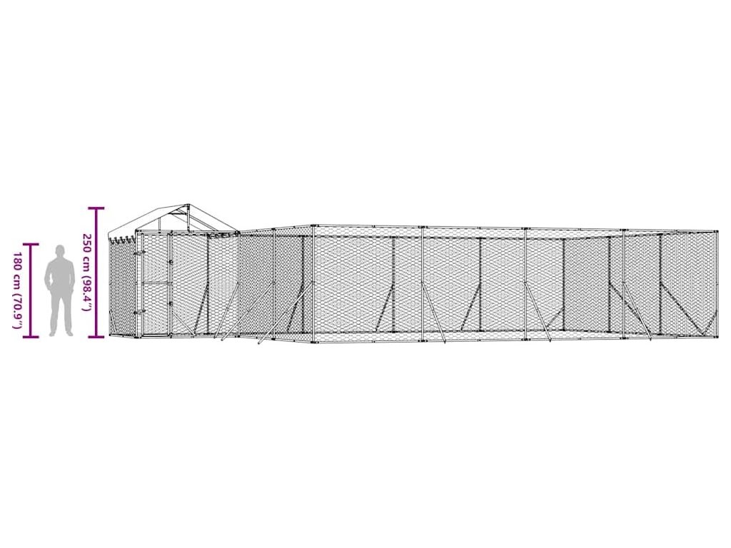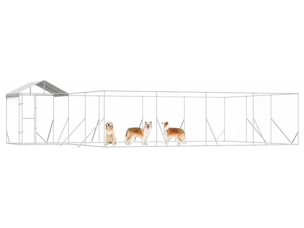 Venkovní psí kotec se střechou stříbrný 10 x 6 x 2,5 m ocel [3190472]