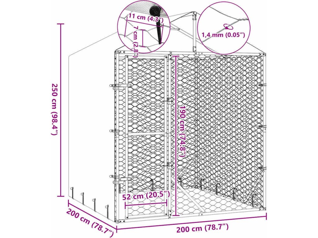 - Robustní konstrukce: Klec pro psy je vyrobena z odolné pozinkované oceli a je robustní a odolná.