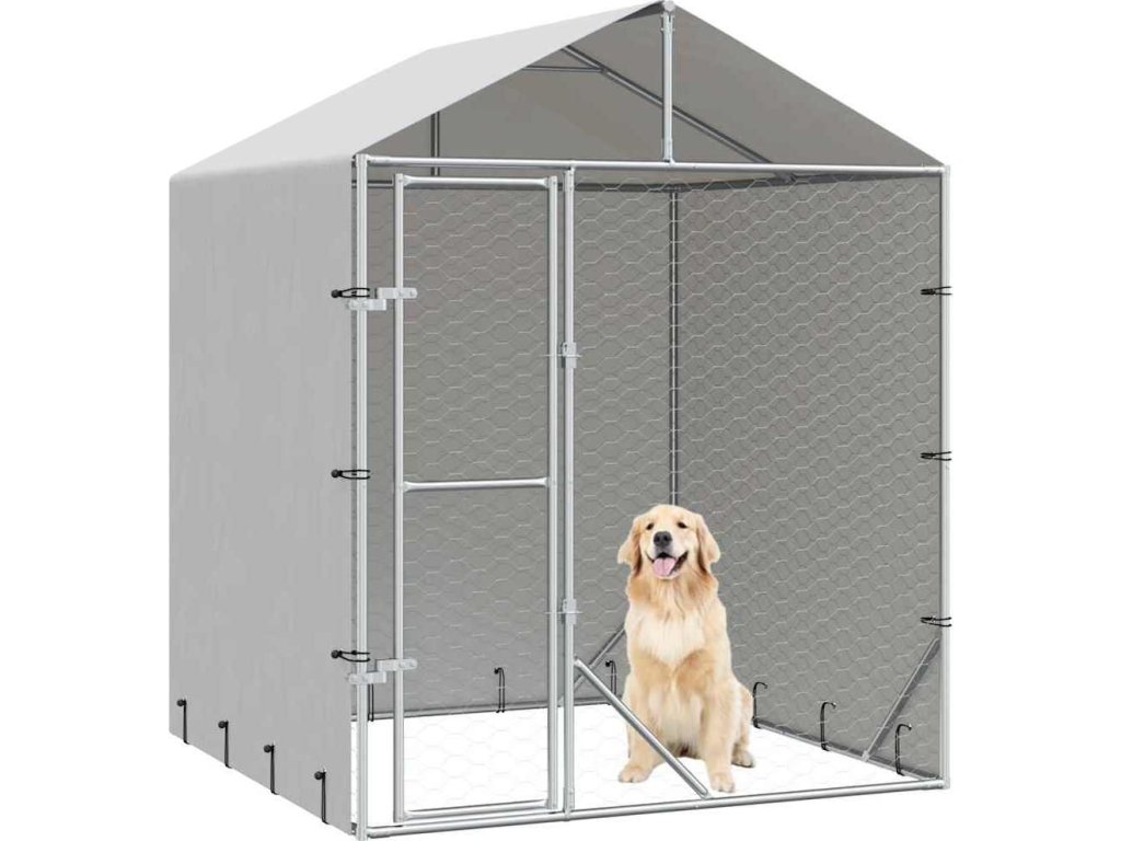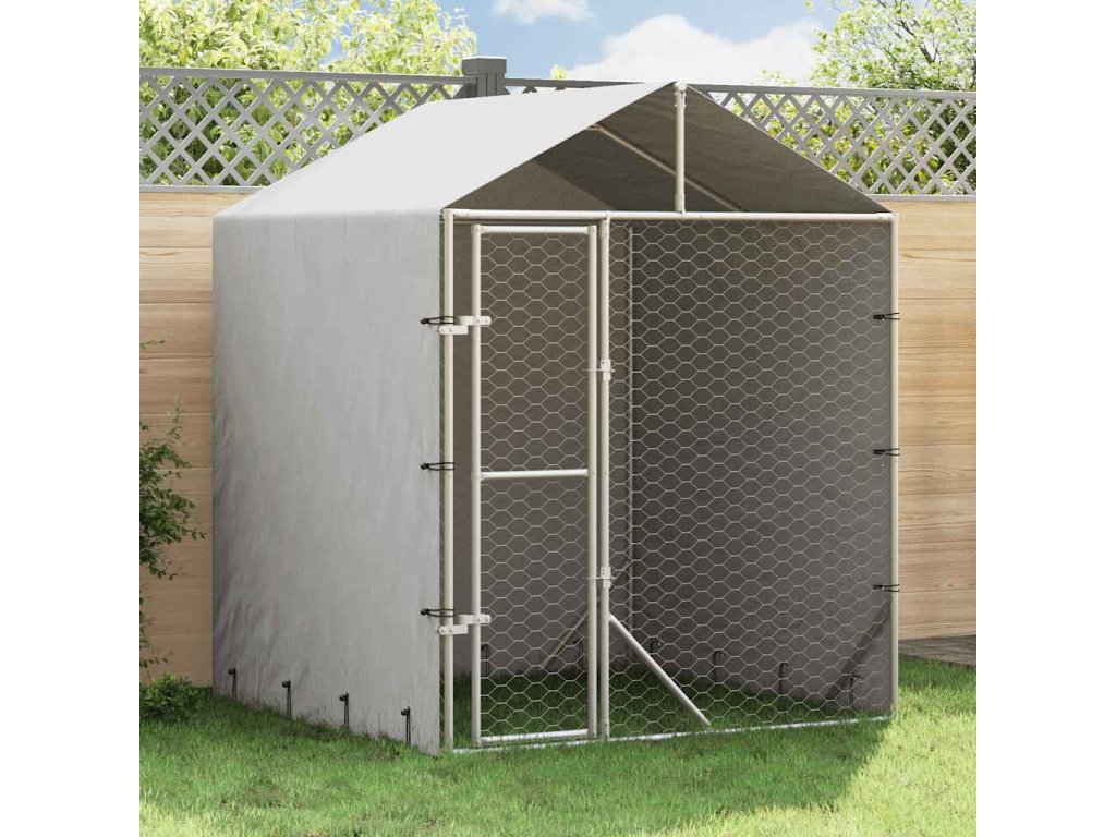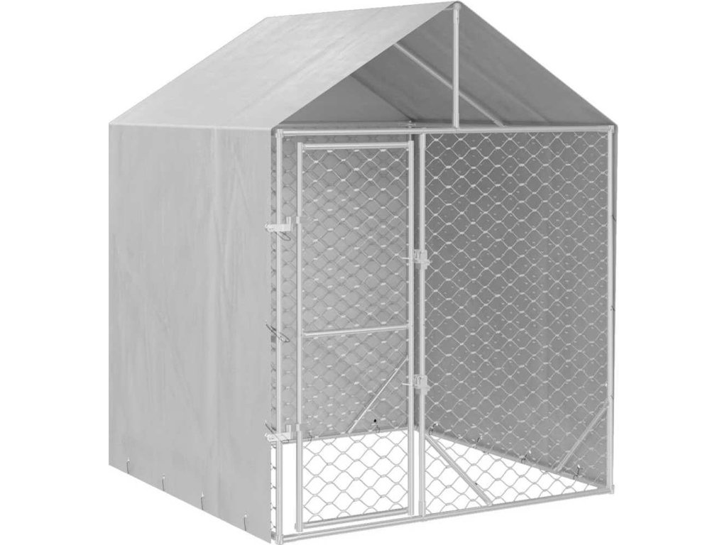 Venkovní psí kotec se střechou stříbrný 2 x 2 x 2,5 m ocel [153676]