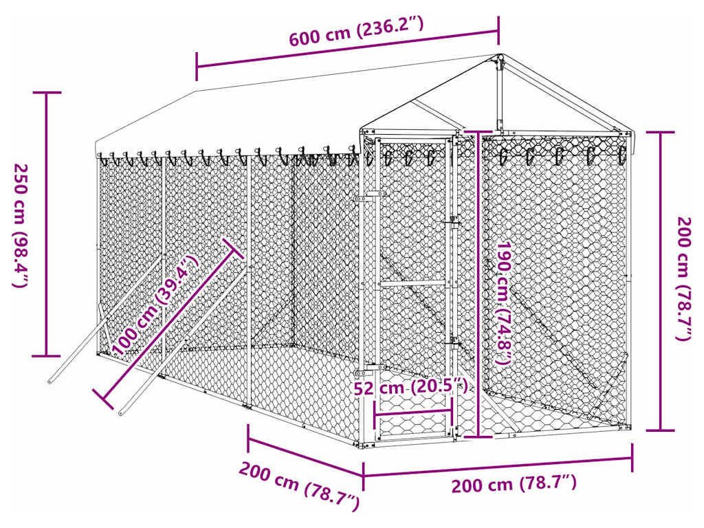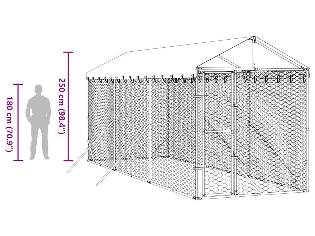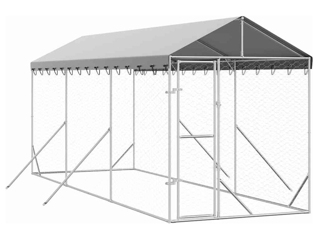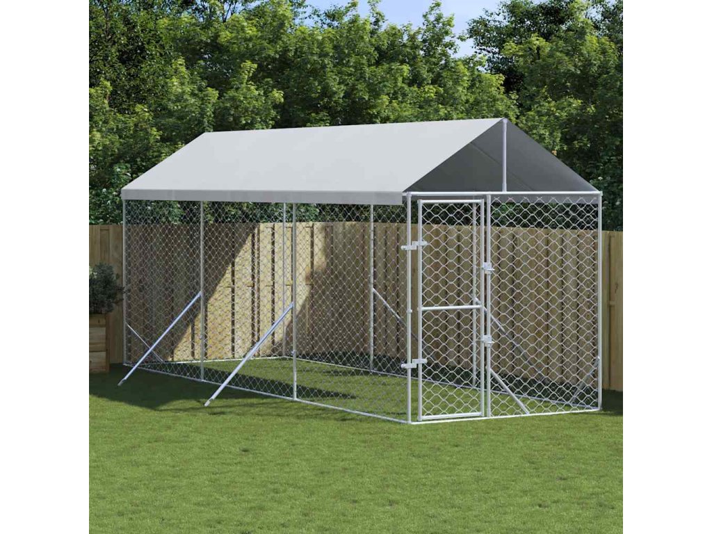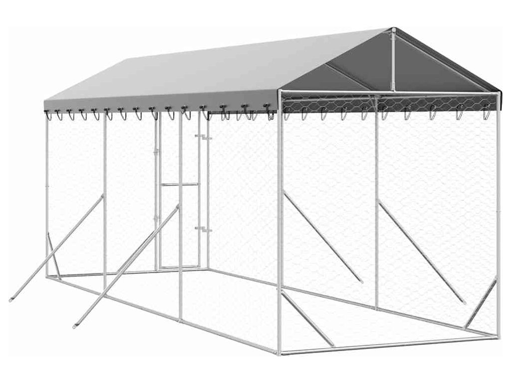 Venkovní psí kotec se střechou stříbrný 2 x 6 x 2,5 m ocel [3190483]