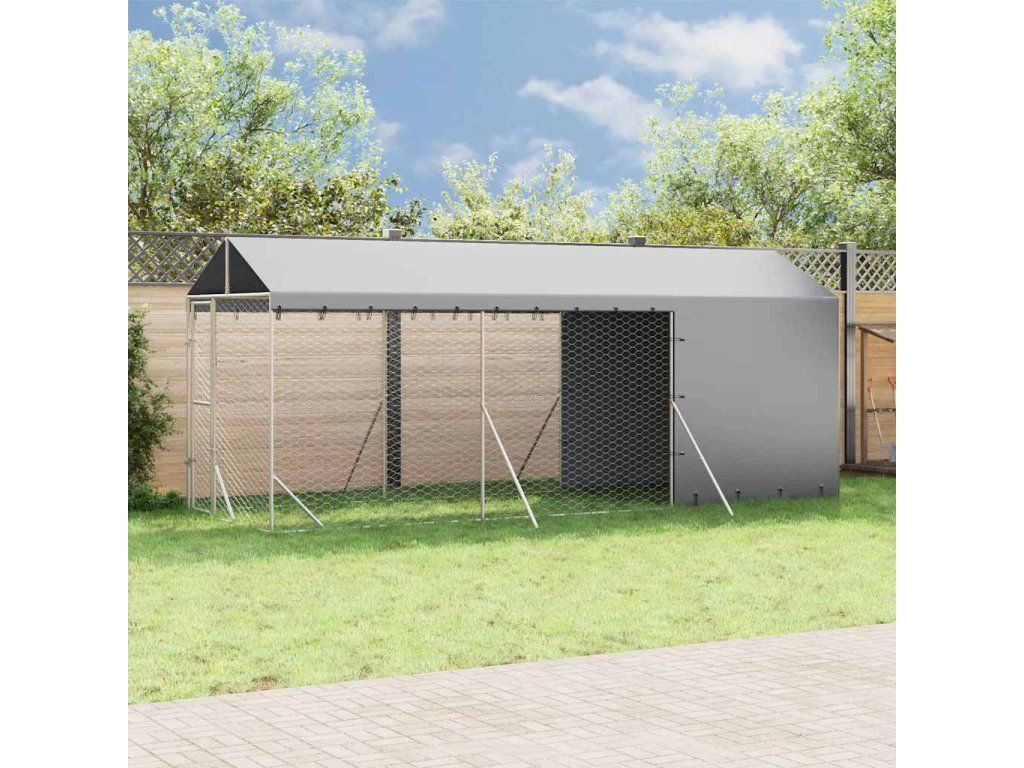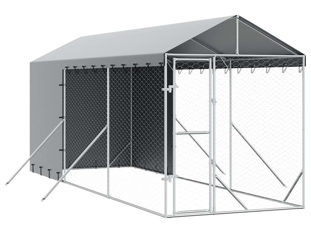 Venkovní psí kotec se střechou stříbrný 2 x 6 x 2,5 m ocel [3190491]