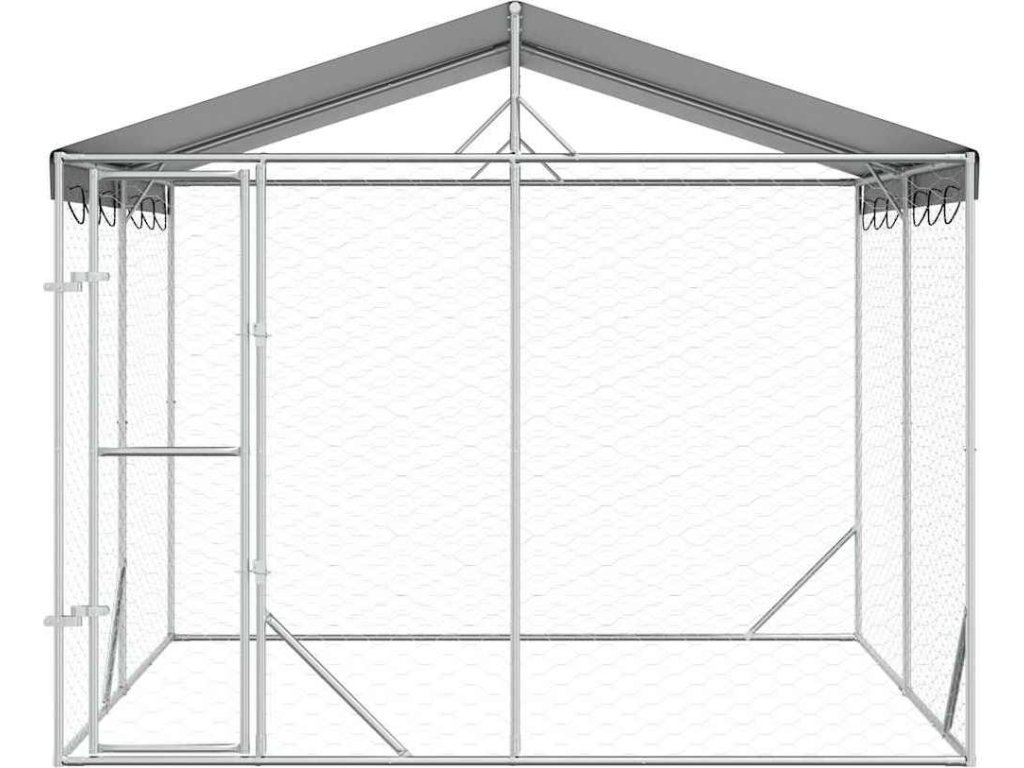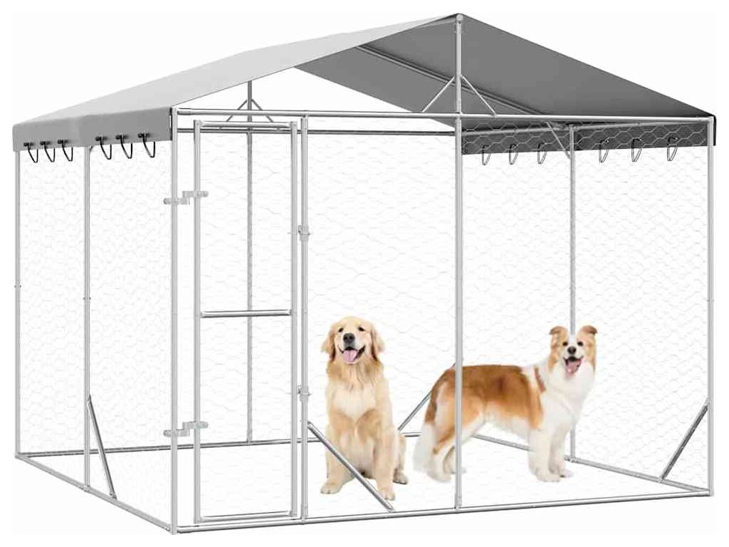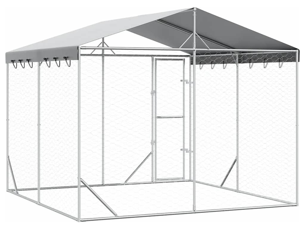Venkovní psí kotec se střechou stříbrný 3 x 3 x 2,5 m ocel [3190486]