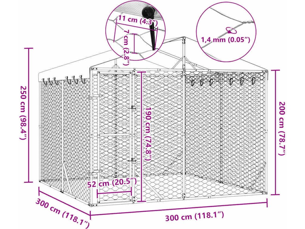 Tento praktický a prostorný venkovní kotec pro psy se střechou je ideální volbou jako venkovní výběh pro zajištění bezpečí a pohodlí vašich zvířat.