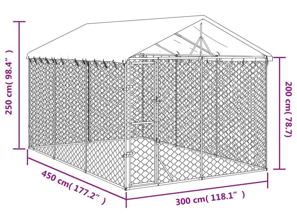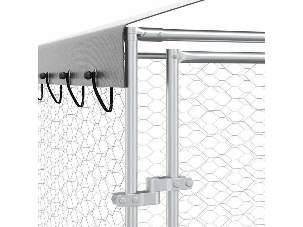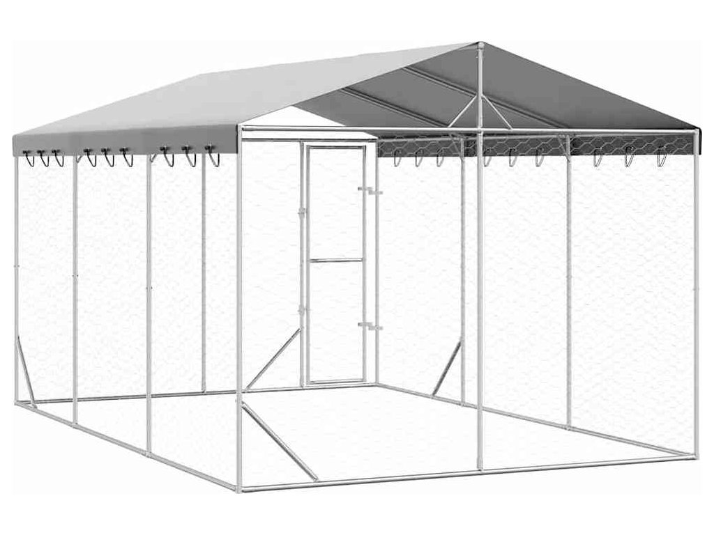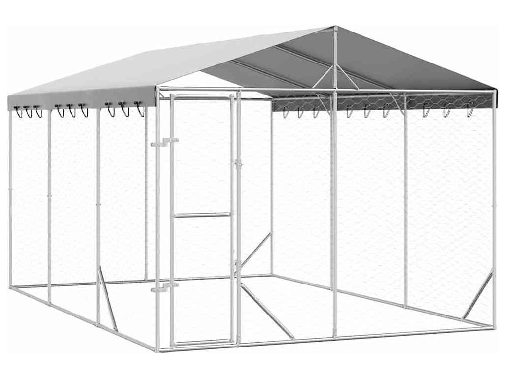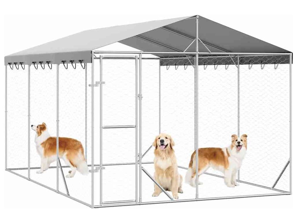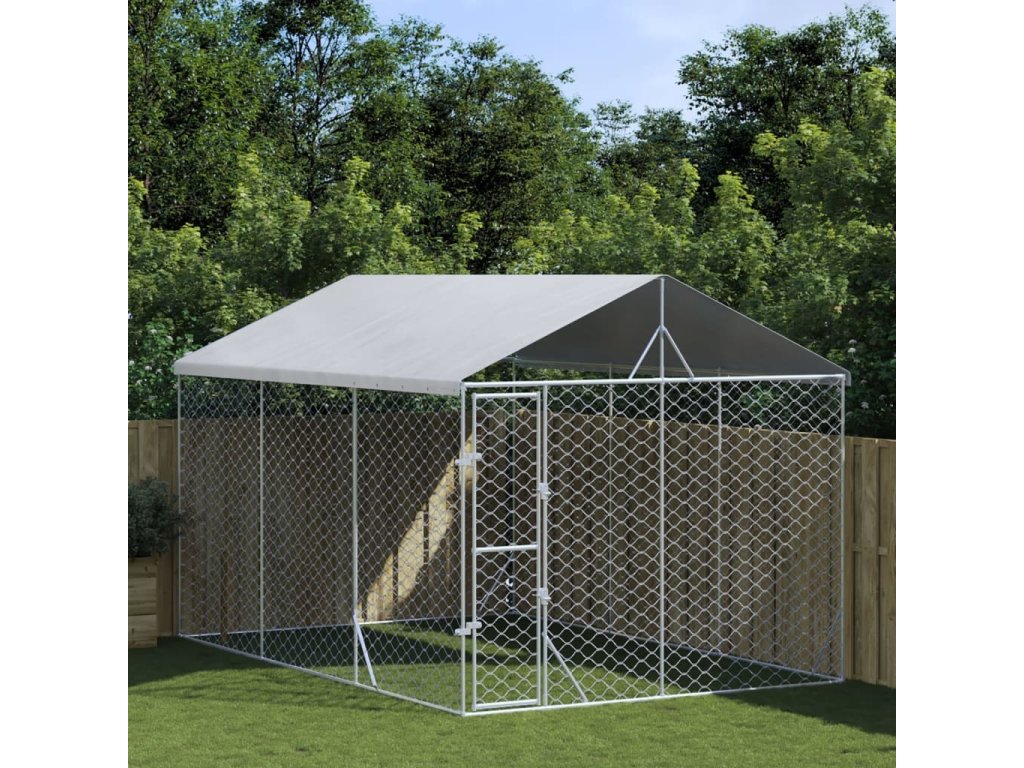 Venkovní psí kotec se střechou stříbrný 3 x 4,5 x 2,5 m ocel [3190487]