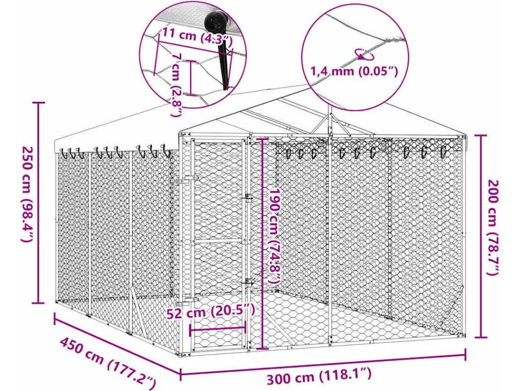 Tento praktický a prostorný venkovní kotec pro psy se střechou je ideální volbou jako venkovní výběh pro zajištění bezpečí a pohodlí vašich zvířat.