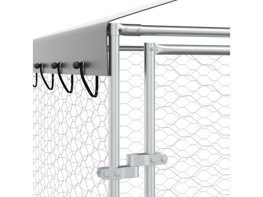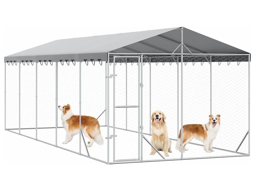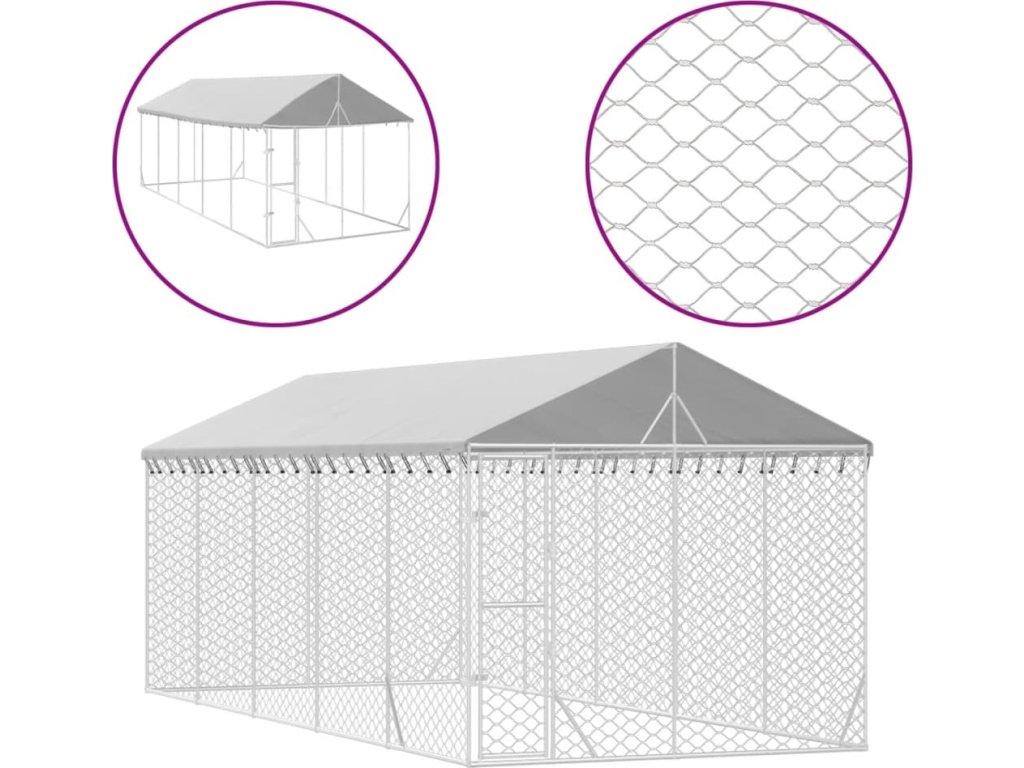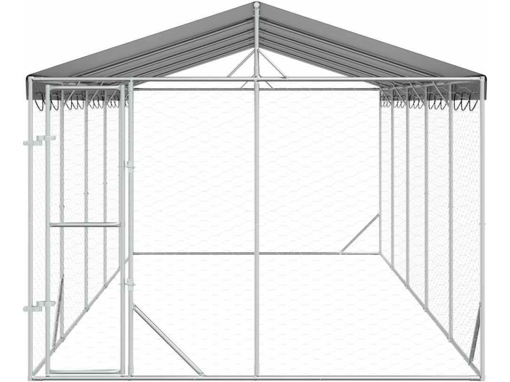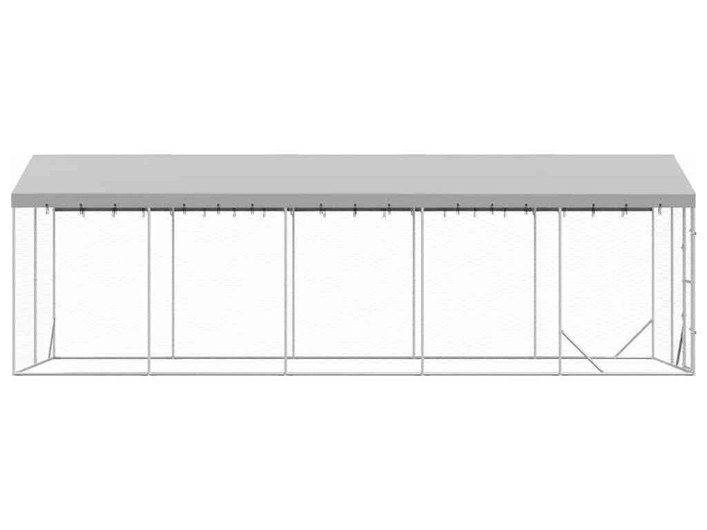 Venkovní psí kotec se střechou stříbrný 3 x 7,5 x 2,5 m ocel [3190489]