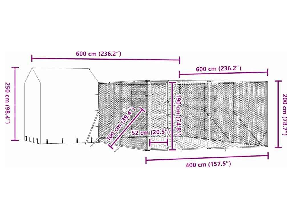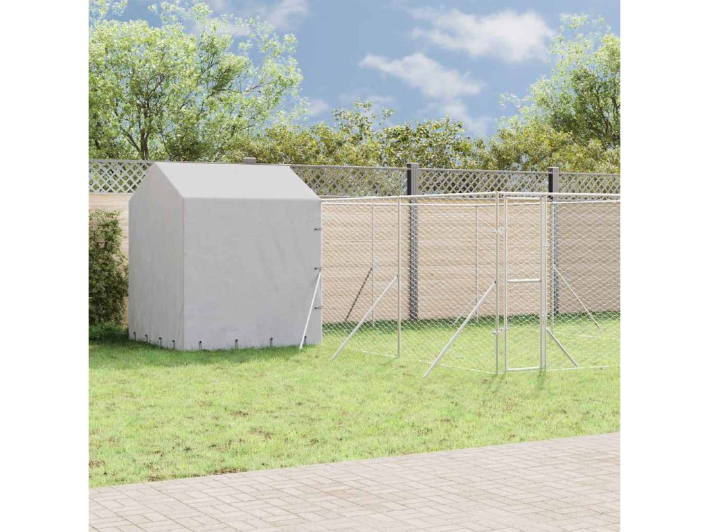 Venkovní psí kotec se střechou stříbrný 6 x 6 x 2,5 m ocel [3190479]