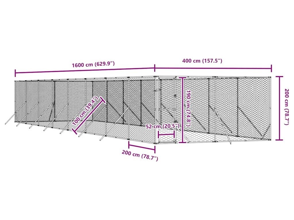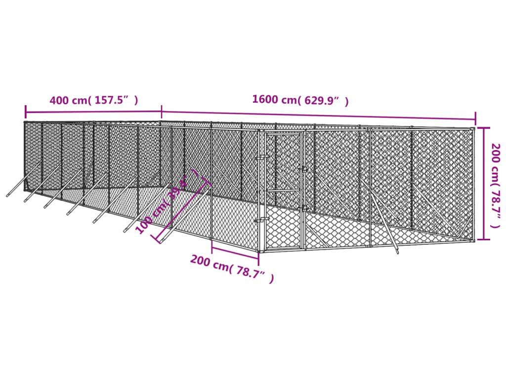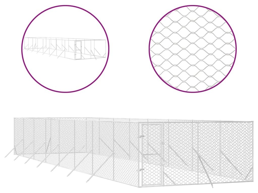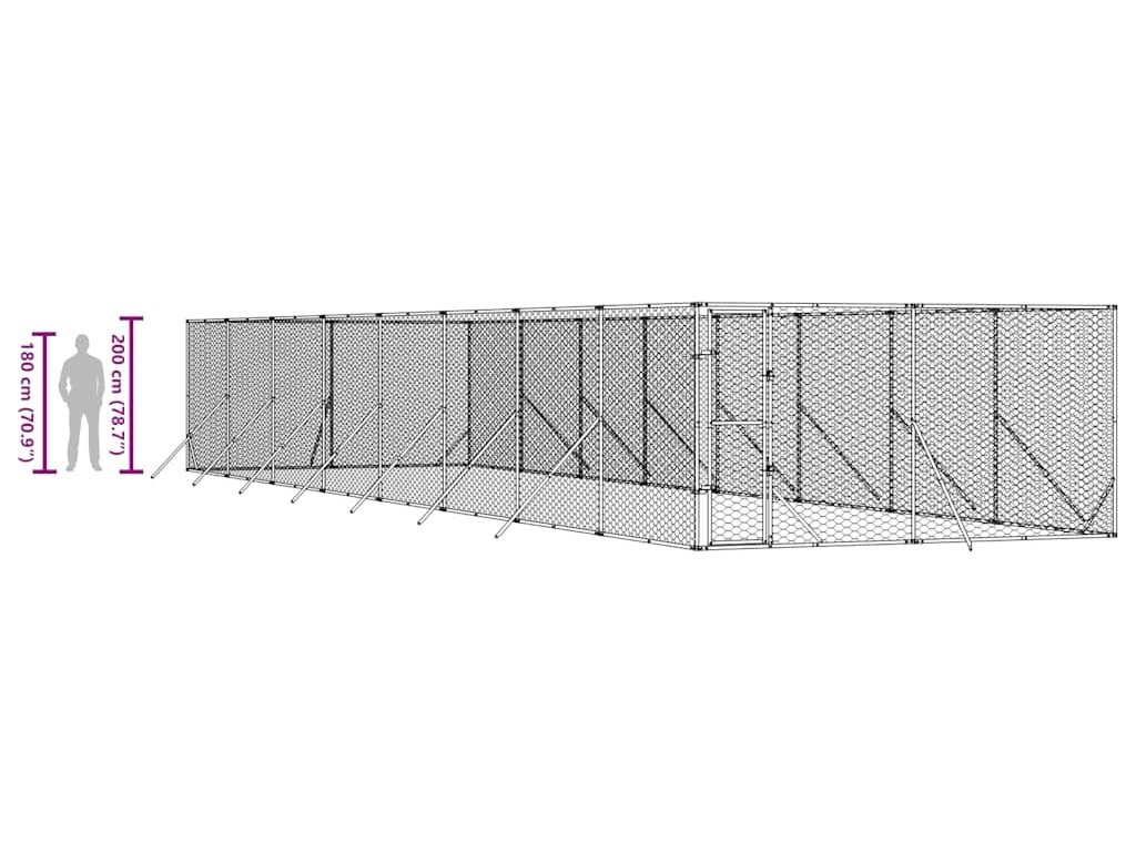 Venkovní psí kotec stříbrný 4 x 16 x 2 m pozinkovaná ocel [3190458]