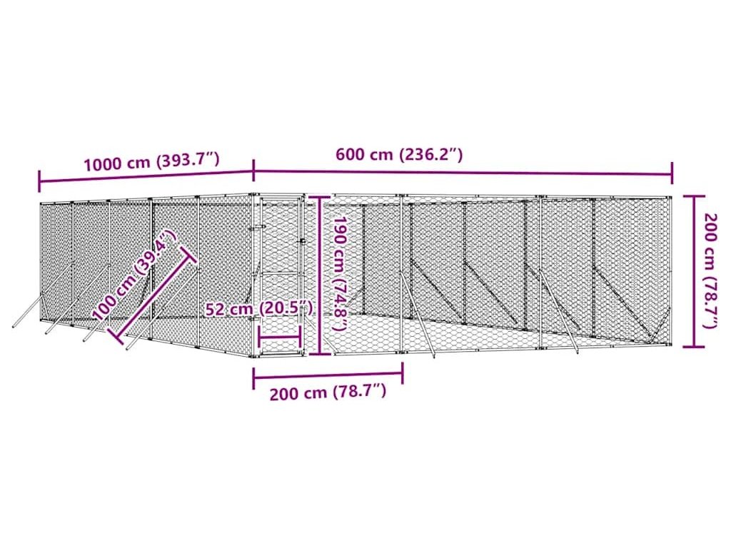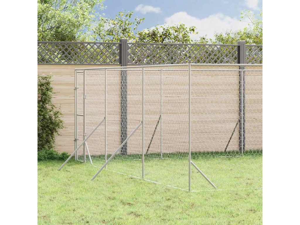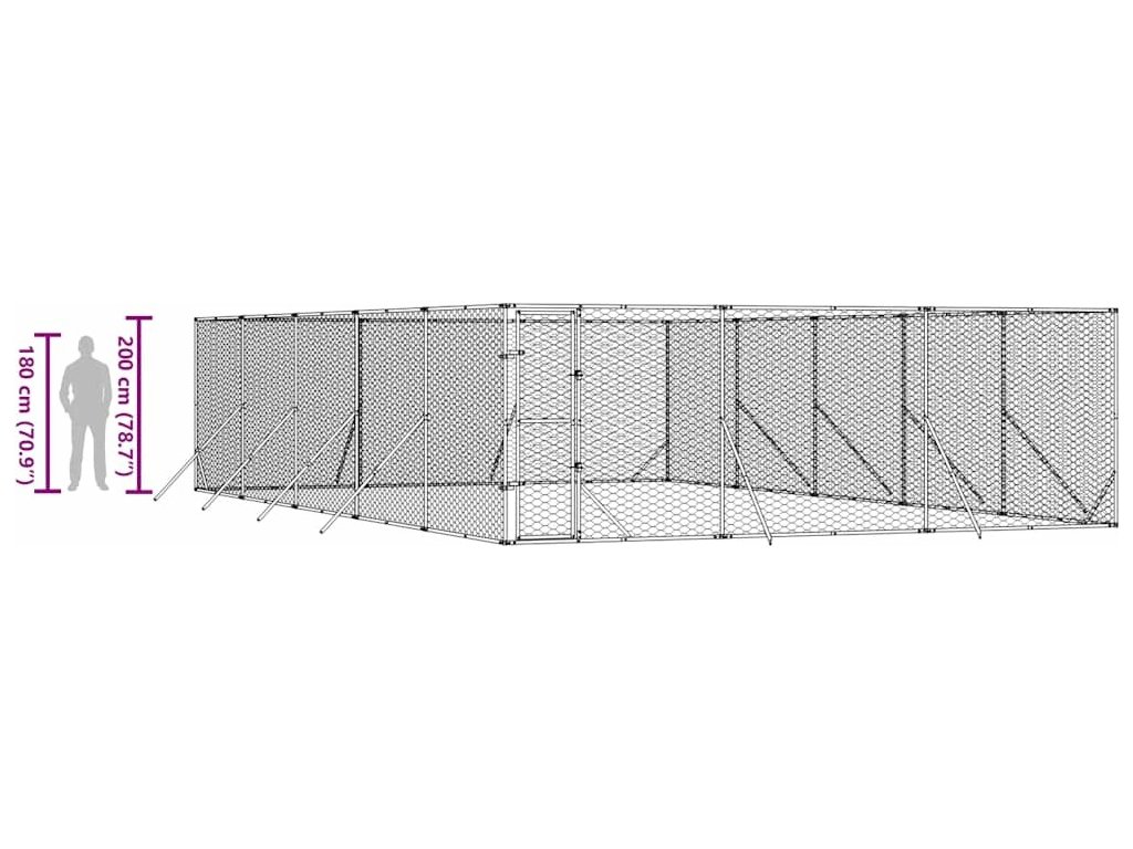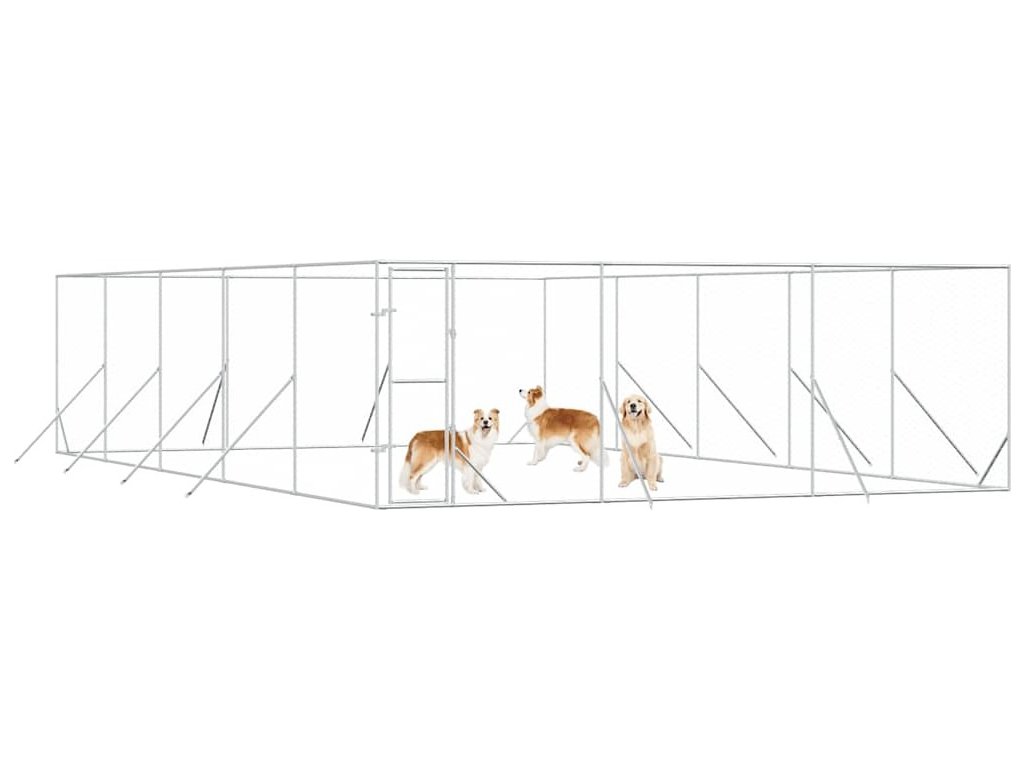 Venkovní psí kotec stříbrný 6 x 10 x 2 m pozinkovaná ocel [3190461]