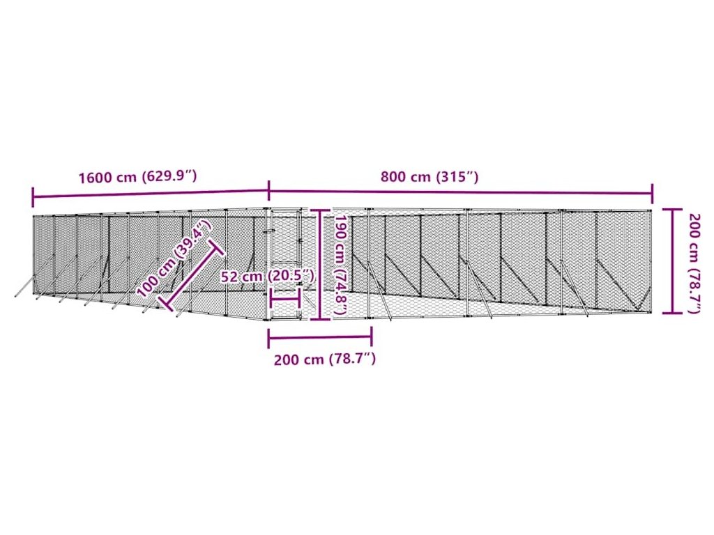 Venkovní psí kotec stříbrný 8 x 16 x 2 m pozinkovaná ocel [3190466]