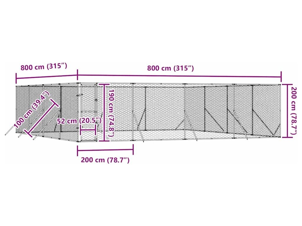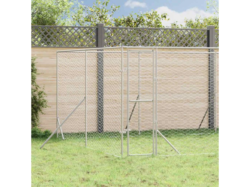Venkovní psí kotec stříbrný 8 x 8 x 2 m pozinkovaná ocel [3190464]