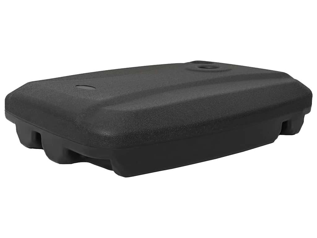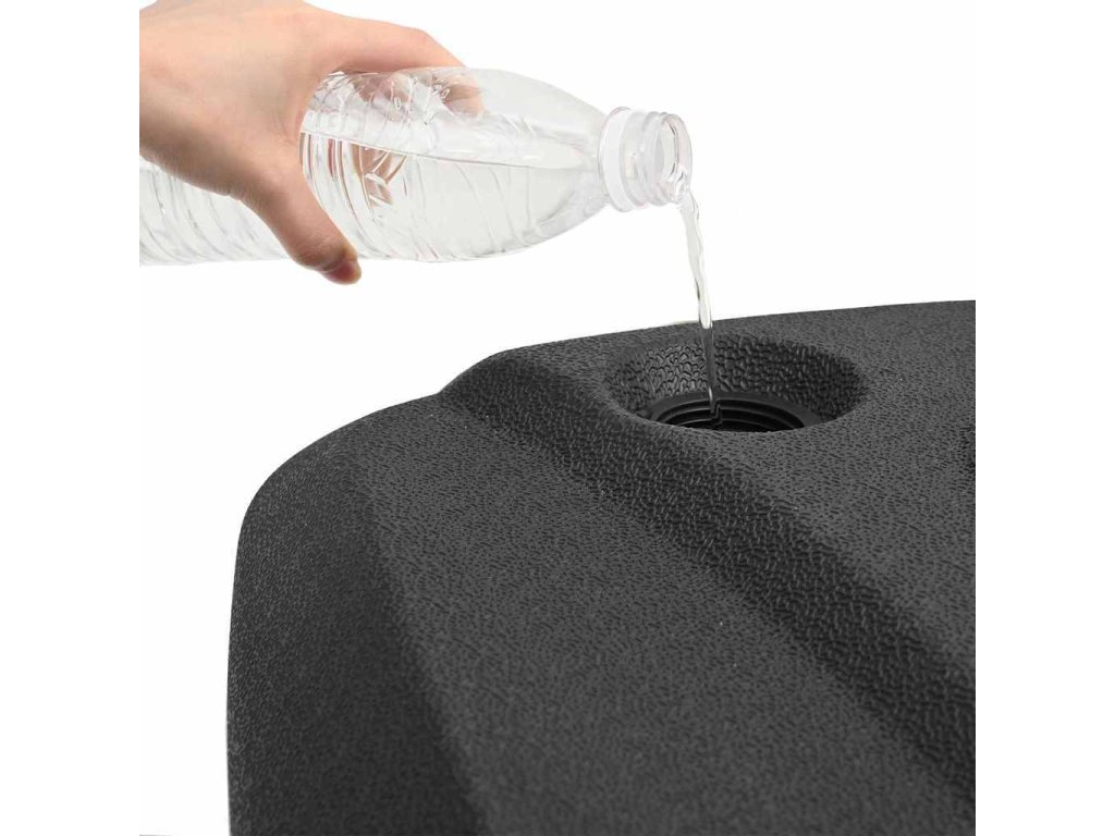 Stojan je vyrobený z pevného, odolného plastu, a lze ho naplnit vodou v kapacitě až přibližně 60 kg, nebo pískem v kapacitě až přibližně 120 kg. Tato základna pro váš slunečník vám bude sloužit dlouhá léta.