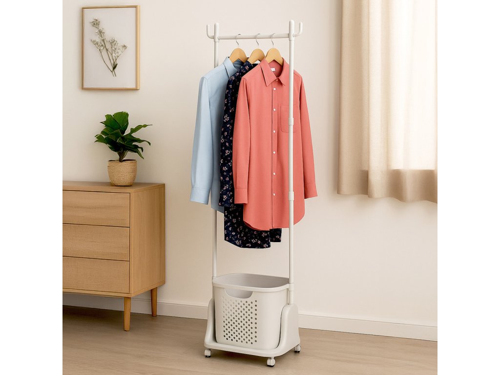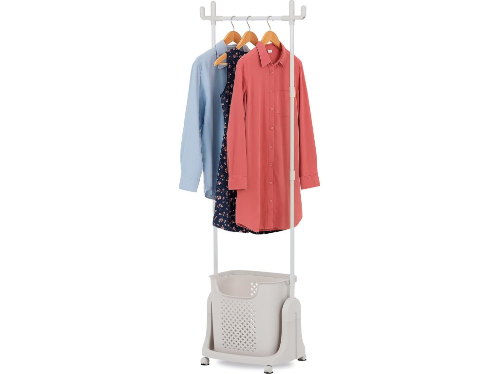 Praktický věšák na šaty s košem na prádlo značky Autronic je dokonalým spojením funkčnosti a elegance. Bílá konstrukce z kvalitního plastu je lehká, stabilní a snadno udržovatelná. Horní část nabízí dostatek prostoru pro zavěšení oblečení, zatímco spodní integrovaný koš na prádlo slouží jako praktický úložný prostor. Díky kolečkům je věšák snadno přemístitelný a hodí se do předsíně, ložnice nebo koupelny. Minimalistický design v bílém provedení zapadne do každého interiéru a usnadní organizaci vašeho domova.