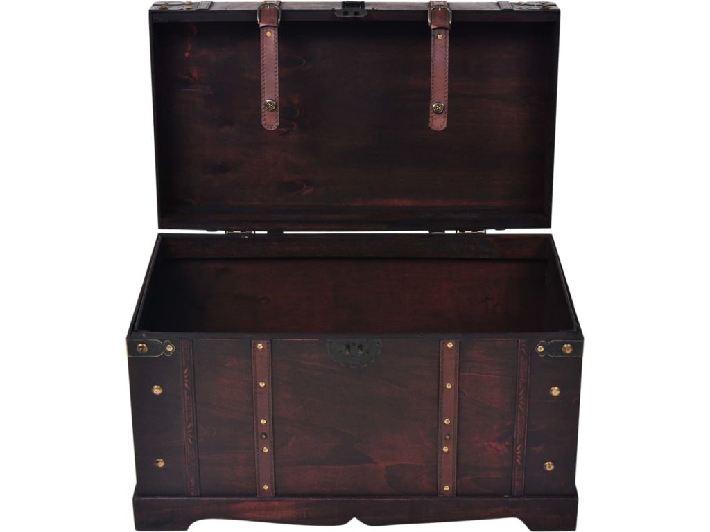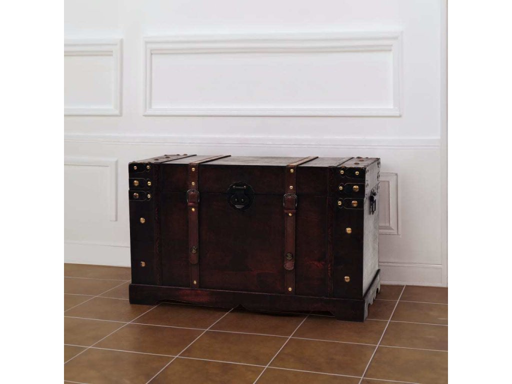 Tato nádherná vintage dřevěná úložná truhla se nejen stane skvělým doplňkem vašeho obývacího pokoje či ložnice, ale také nabízí spoustu místa, kam si můžete uschovat různé věci, jako je oblečení, časopisy a knihy tak, aby nebyly na očích.