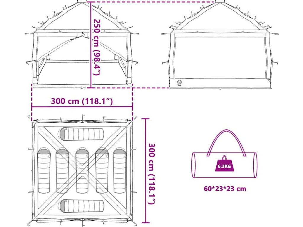 - Celkové rozměry: 300 x 300 x 250 cm (D x Š x V)