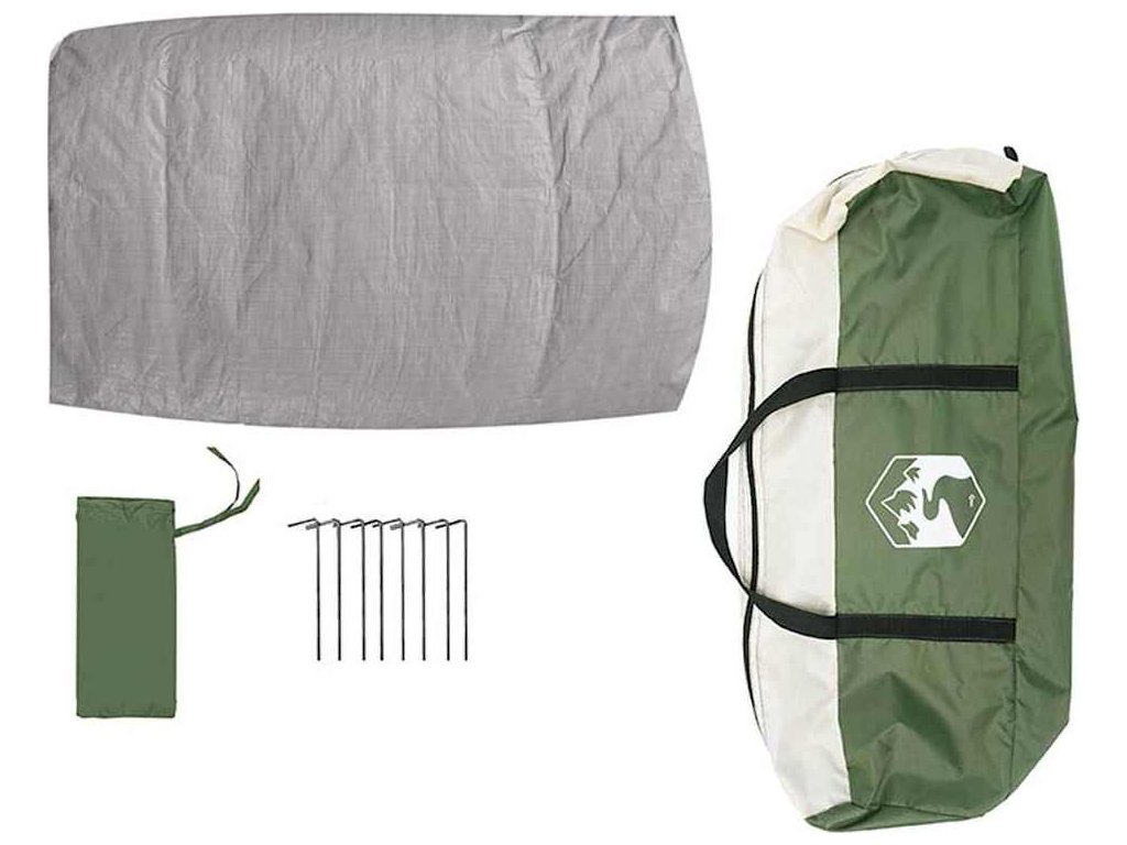- Součásti: Stan včetně stanu, tyčí, kotvy a přepravní tašky pro pohodlné přenášení. Pak je jasně jednoduché si to všechno sestavit, zajistit a uskladnit.