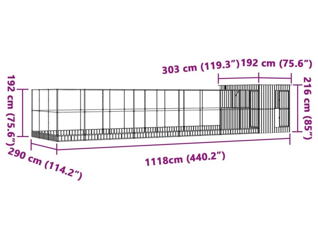Voliéra s nástavbou stříbrná 1 118 x 303 x 216 cm ocel [3214266]