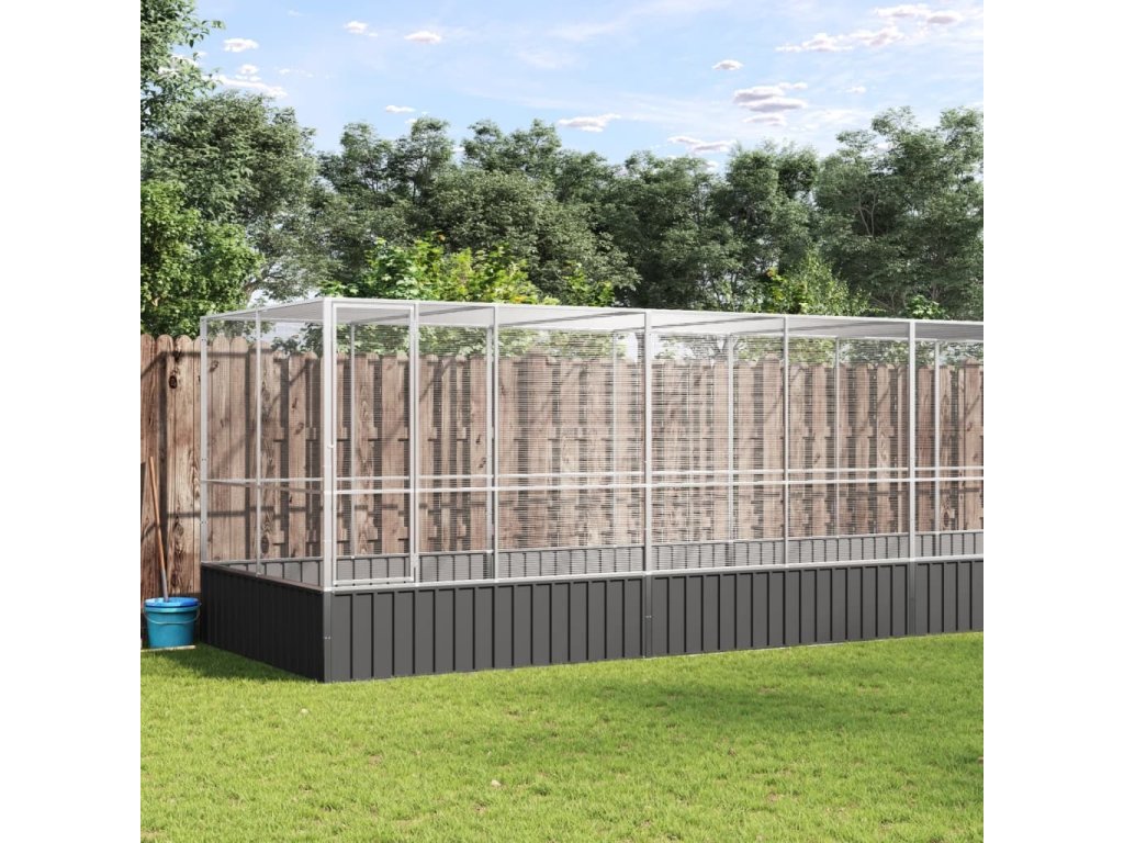 Voliéra s nástavbou stříbrná 625 x 207 x 212 cm ocel [3214273]