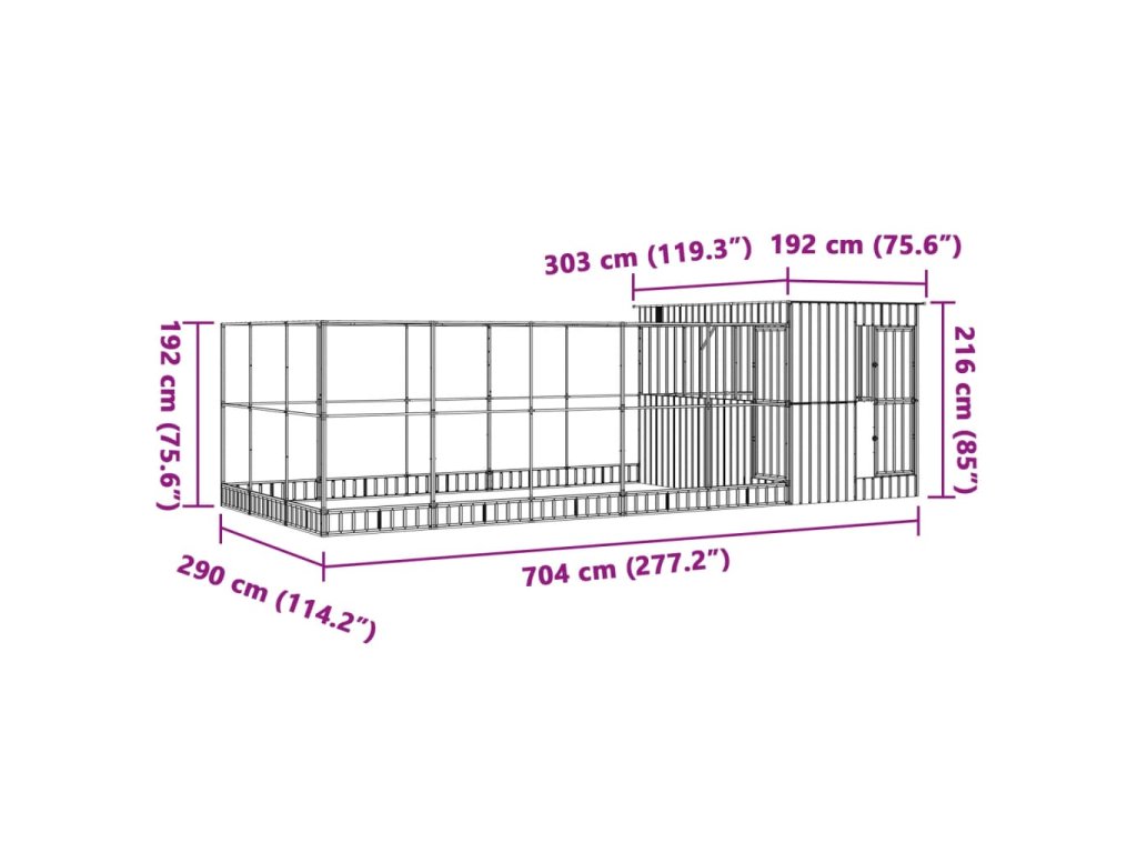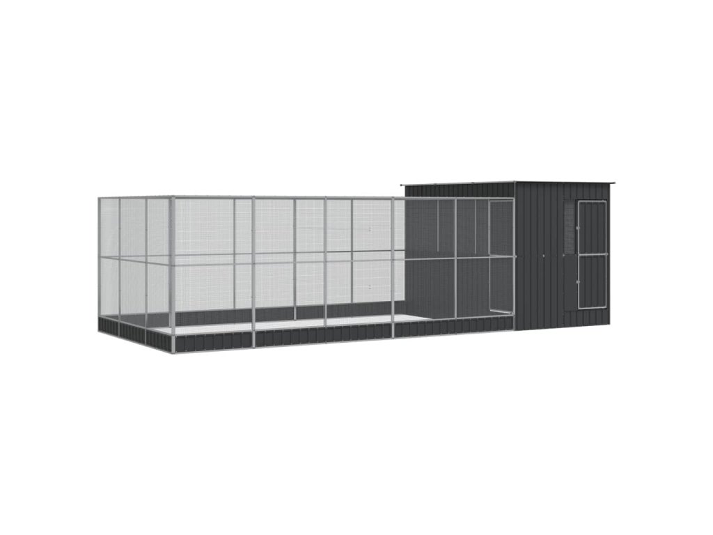 Voliéra s nástavbou stříbrná 704 x 303 x 216 cm ocel [3214264]
