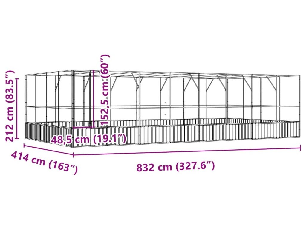 Voliéra s nástavbou stříbrná 832 x 414 x 212 cm ocel [3214281]