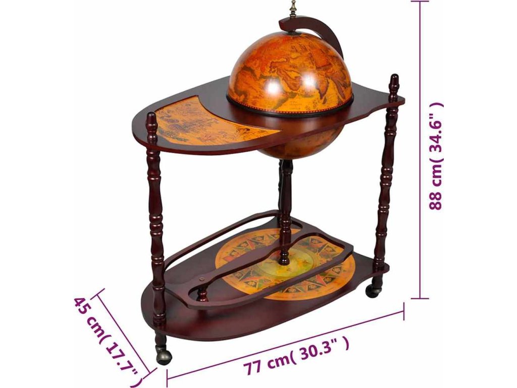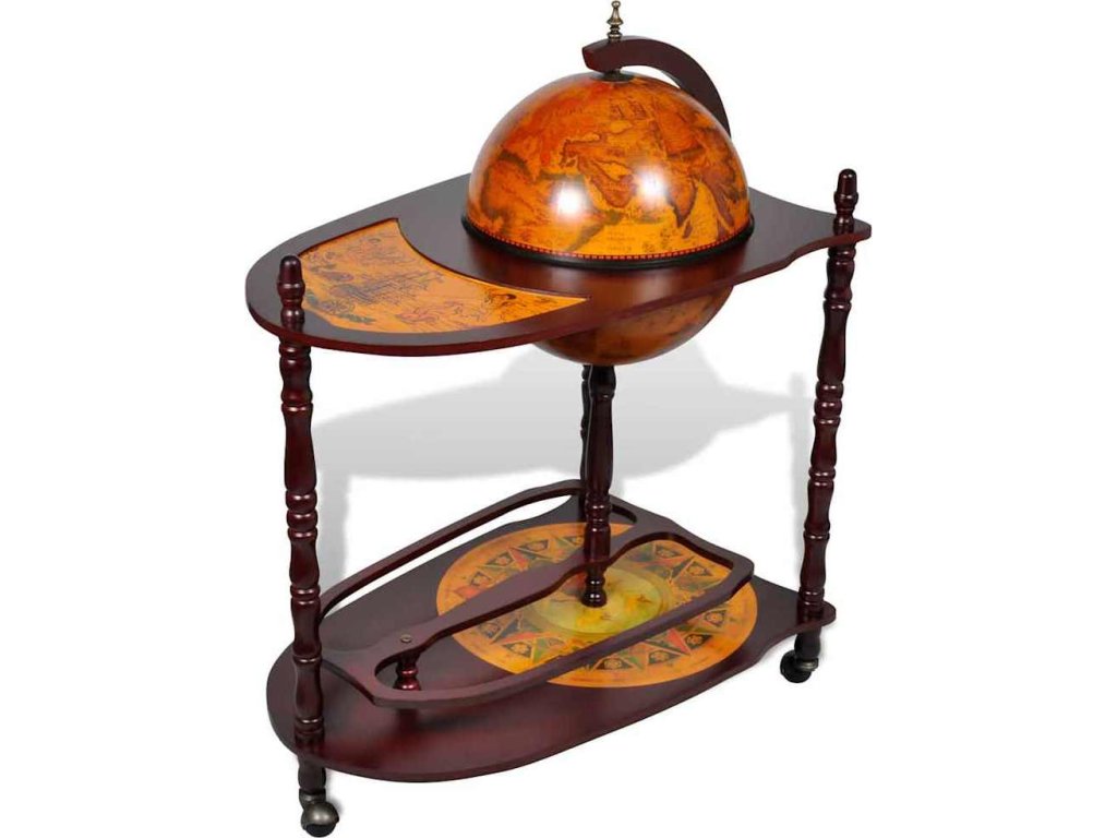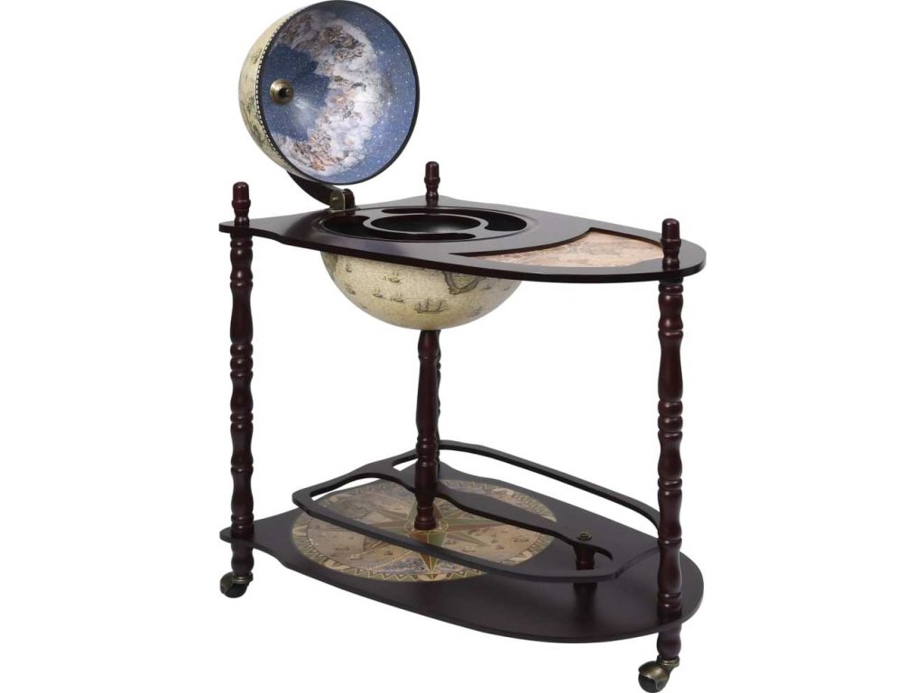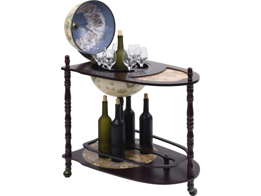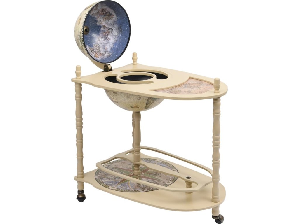 Otevřením našeho dřevěného globus baru odhalíte velký bar se spoustou místa na lahve s vínem, likéry a jinými nápoji a také na vinné sklenice, takže si své lahve a skleničky můžete úhledně uložit a zároveň k nim mít snadný přístup. Globus bar je navíc designovaný s prodlouženým stolkem a spodní policí, kde máte další místo pro odkládání lahví i skleniček.