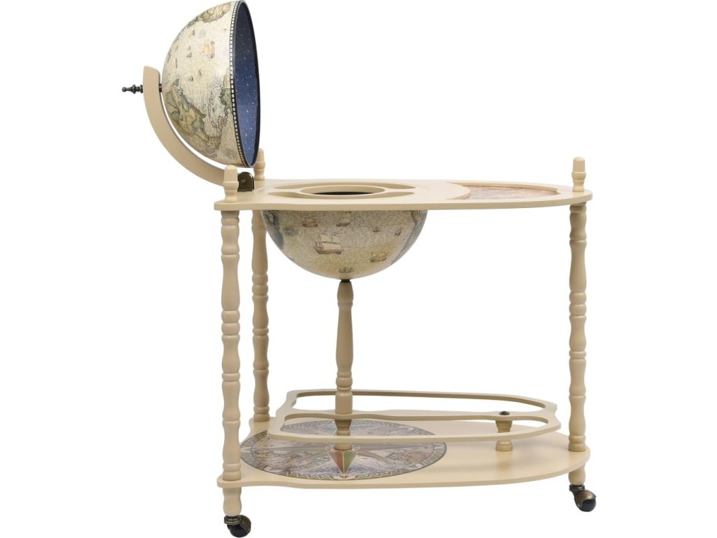 Vnější povrch globusu je obalen replikou staré námořní mapy a stolek, základna a vnitřek globusu jsou vyzdobeny kopiemi renesančních maleb, takže jde o opravdový umělecký kousek a skvělou dekoraci pro domácnost i kancelář.