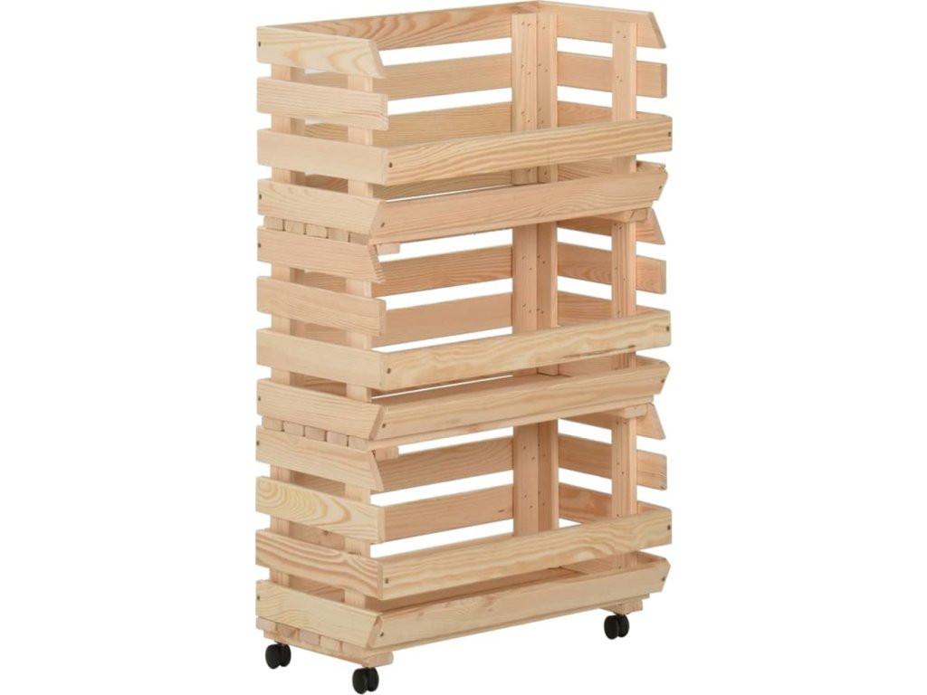 Bedýnkový vozík je vyrobený z masivního borového dřeva, takže je stabilní a odolný. Má 3 přihrádky pro umístění potravin, lahví a dalších nezbytností, které tak budete mít vždy po ruce. Jelikož má odnímatelnou konstrukci, můžete každou polici používat samostatně podle potřeby. Kuchyňský vozík je navíc vybavený kolečky pro snadné přesouvání.