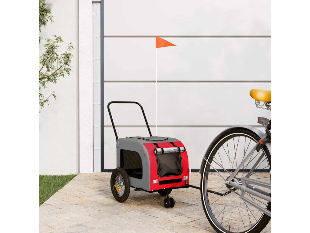 Vozík za kolo pro domácí mazlíčky s úložištěm Červeno-šedá [93845]