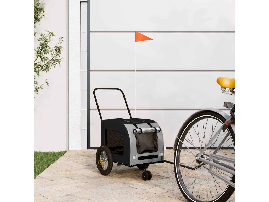 Vozík za kolo pro domácí mazlíčky Šedá a černá 125 x 53 x 54 cm [93846]
